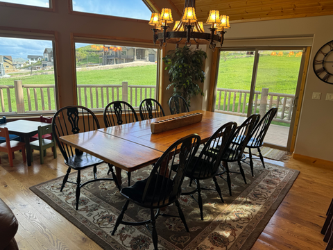 The Raspberry Patch cabin is 3,200 square feet, 5 bedrooms, 3 baths, two car garage and has parking for 8 vehicles!